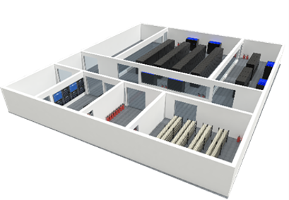 IDM è un modulo che comprende alimentazione, raffreddamento, rack, cablaggio e gestione. Il modulo può essere a fila singola o doppia e può essere esteso fino a una lunghezza di 15 metri. La sigillatura dei canali di ventilazione caldo o freddo riduce notevolmente il consumo energetico. È adatto non solo per data center di piccole dimensioni, ma anche per data center di medie dimensioni.